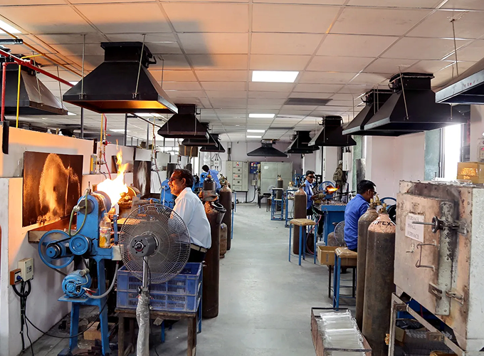 The manufacturing plant in Bharuch, Gujarat, serves as our primary facility for producing glassware, which is our specialty since 60 years and a hallmark of recognition. Supported by our team of skilled glass blowers, advanced annealing equipment and in house calibration lab with automated calibration system we guarantee the delivery of superior lab glassware, adhering to the highest quality standards for our esteemed customers.
