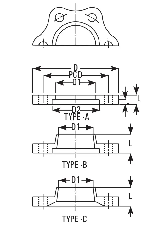 – **Dimensional Options**: Flanges offered across multiple DN (nominal diameter) sizes, with matching bolt circle diameters (PCD), number of bolt holes, and thicknesses