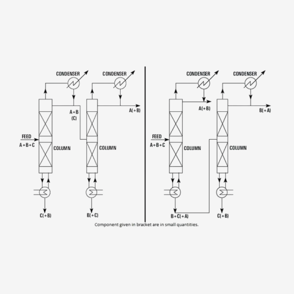 • Components: reboiler, distillation column, reflux divider, condenser, receiver