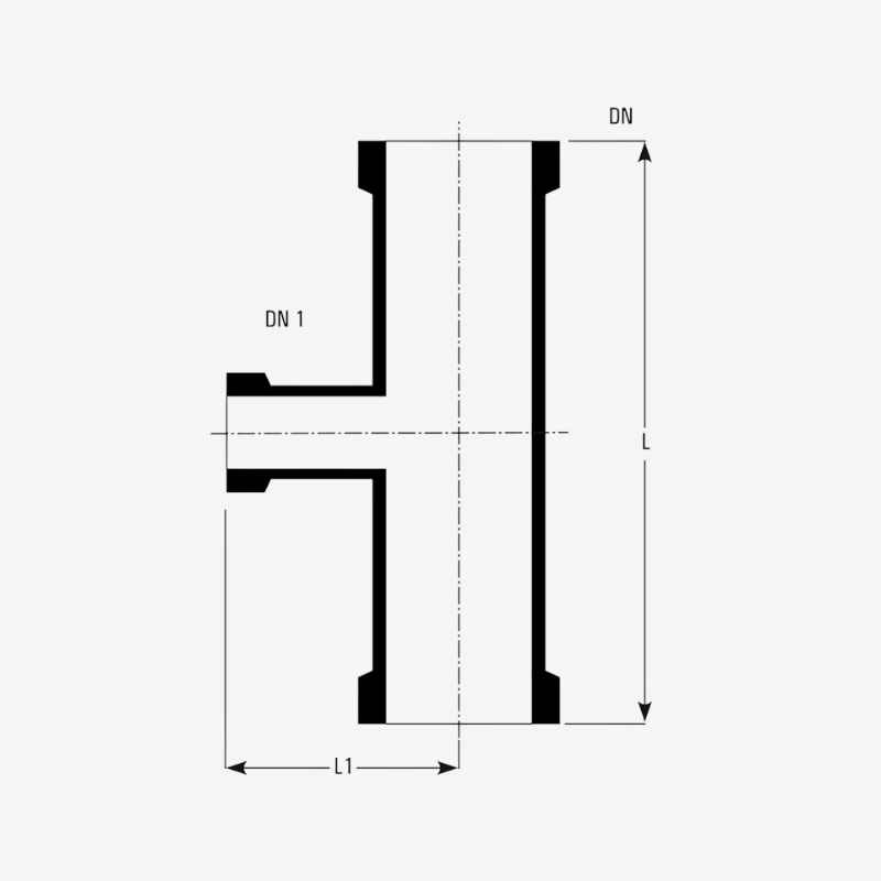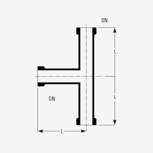 Goel’s equal tees are glass pipeline fittings with three ports of identical diameter, used for splitting or joining fluid flow symmetrically. The Goel site provides catalogue tables listing “Equal Tees” (PT, PTU series) with DN and length (L) dimensions. Designed for precision flow management, Equal Tees ensure smooth branching of pipelines without affecting pressure balance.