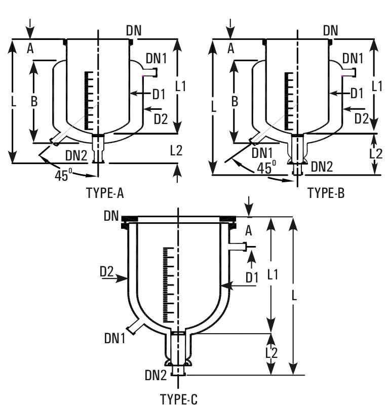 – **Jacket media**: Steam, hot/cold water, thermal oil, refrigerants