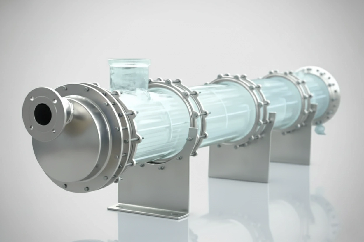 – **Materials**: Borosilicate glass tubes, PTFE/packing seals, structural frames in SS or FRP, options for shell materials when required